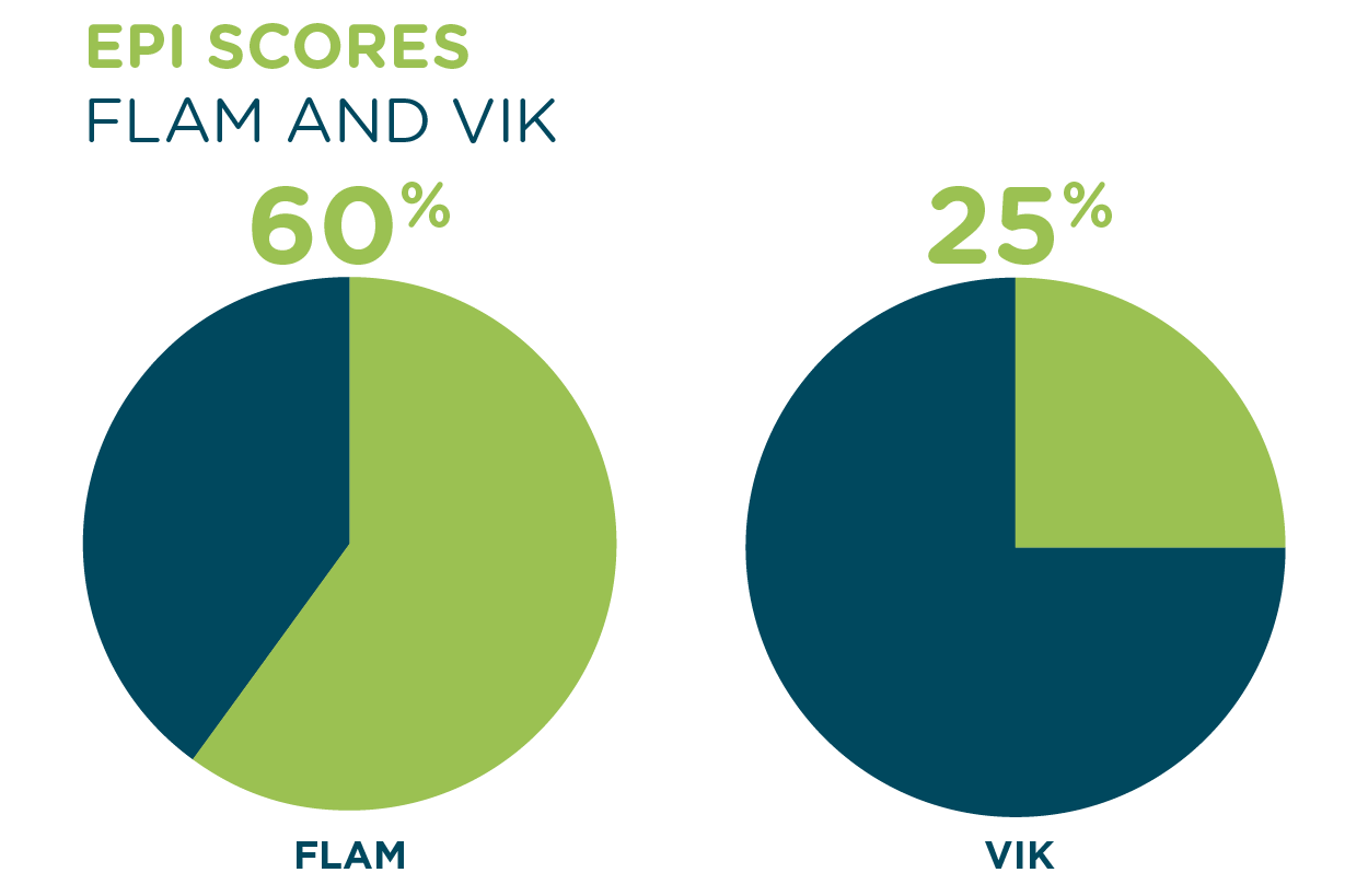 The impact of local policy changes and the new incentive system is clear to see when comparing the overall EPI scores for Port of Flåm (60%) and Port of Vik (25%).